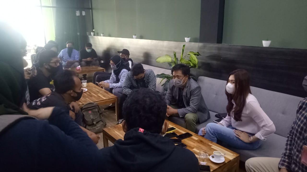 Ketua KPU, Erwin bersama Nirmalasari Yukiko jumpa pers perihal penundaan Debat Publik Calon Wali Kota di Pilkada Bontang