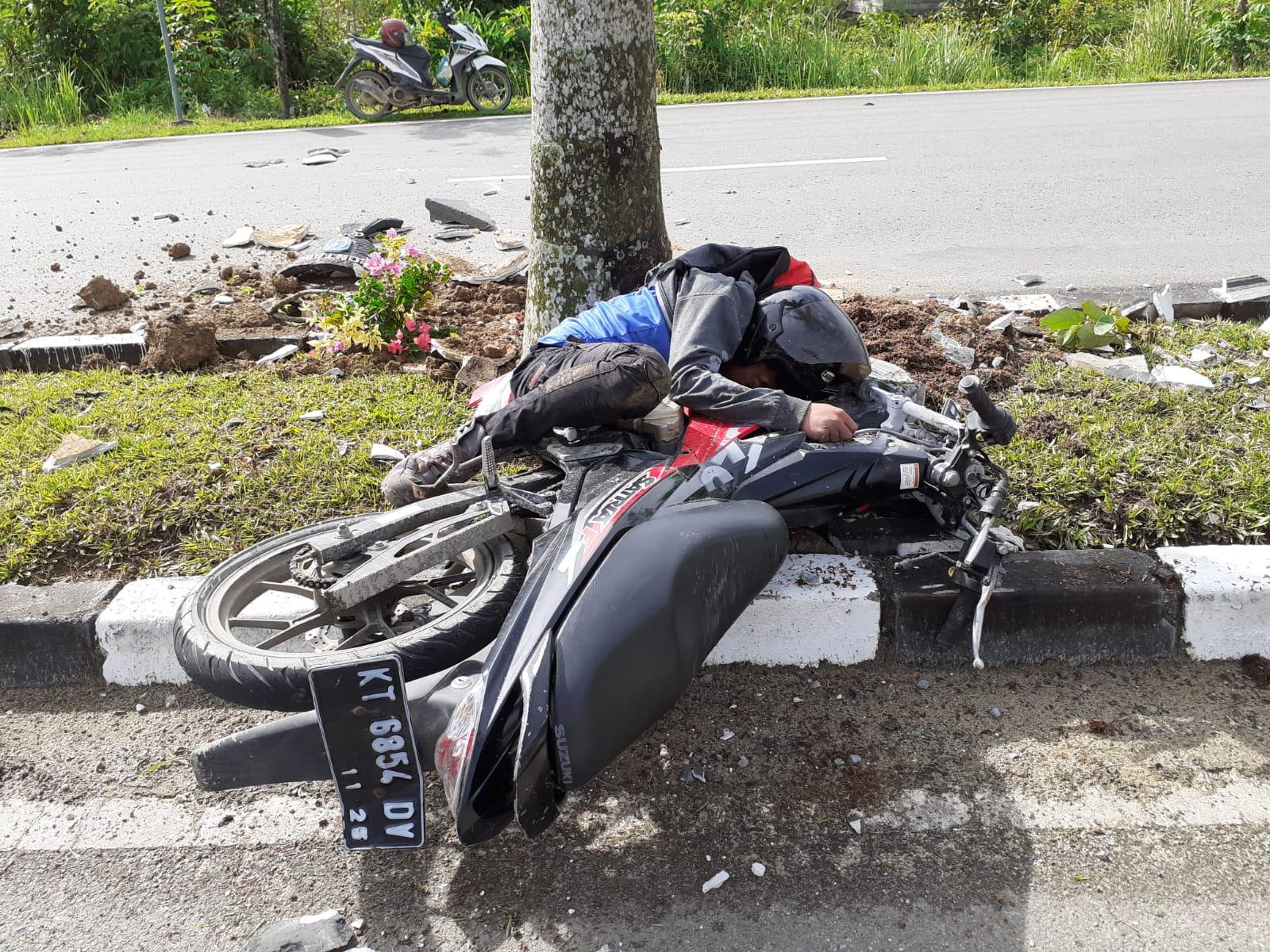 Dugaan sementara, Saparudin yang bertindak sebagai joki Satria F berplat polisi KT 6854 DV itu tidak mampu mengendalikan laju kendaraanya hingga terjadi Out Of Control.