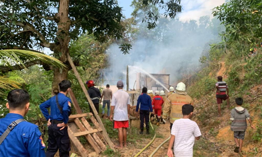 “Kami sempat kesulitan karena akses menuju lokasi kebakaran, sempit dan menanjak,” kata Komandan Kompi Disdamkartan Bontang, Norman. (*)